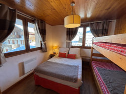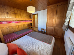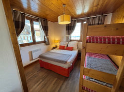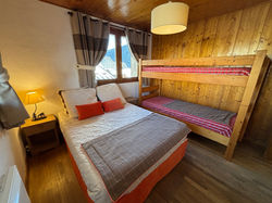 Une chambre confortable avec un lit double (140 cm) et un lit superposé (2 lits simples de 90 cm). Elle dispose de rangements, lampes de chevet, couettes, coussins et couverture.
